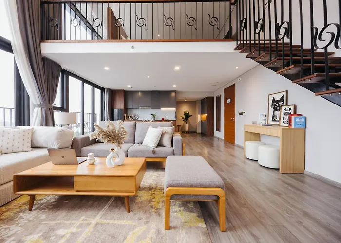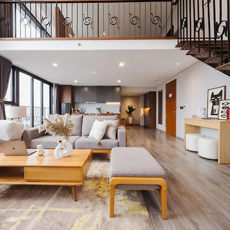Pentstudio Duplex Apartment ハノイ市はBãi Đá Vườn Hoa Sông Hồngから歩いて25分です。 アパートには湖の景色を見渡せるテラスがあります。